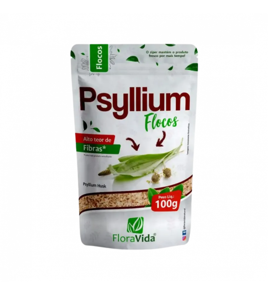 Psyllium Flocos 100g da Flora Vida é rico em fibras solúveis, auxiliando na regularização do intestino, no controle do colesterol e na sensação de saciedade. Ideal para quem busca uma alimentação saudável e equilibrada. O Psyllium é uma fibra solúvel extraída da casca das sementes da planta Plantago ovata. Nosso Psyllium Flocos 100g da Flora Vida é rico em mucilagens, substâncias que formam um gel no intestino, promovendo uma sensação de saciedade e facilitando a formação das fezes. Benefícios: Regulariza o intestino: Combate a prisão de ventre e promove a saúde intestinal. Reduz o colesterol: Ajuda a reduzir os níveis de colesterol ruim no sangue. Auxilia no emagrecimento: Aumenta a sensação de saciedade e reduz o apetite. Controla a glicemia: Ajuda a controlar os níveis de açúcar no sangue. Protege o coração: Contribui para a saúde cardiovascular.